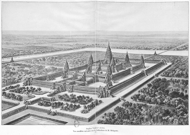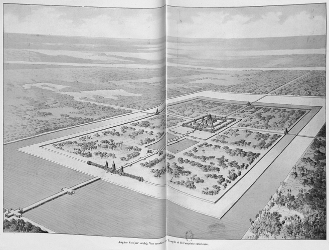 Angkor Vat (XIIe siècle). Vue cavalière exécutée sur les indications de M. Delaporte
