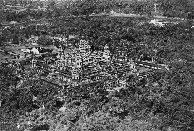 Angkor Vat (XIIe siècle). Vue cavalière du Temple et de l’enceinte extérieure.