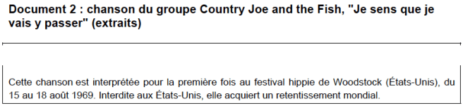 Analyse : le texte est dépourvu de référence, mais la première interprétation de la chanson est datée en légende du festival de Woodstock (15-18 août 1969).