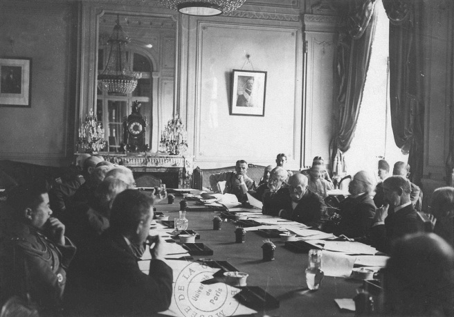 « Trianon Palace. Délibération du Comité interallié sur les conditions de l’armistice. Versailles. 1er novembre 1918. » Albums Valois.